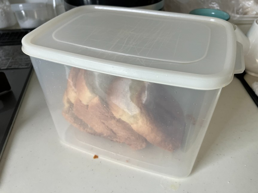 100均で昔買った「食パン用タッパー」がまた活躍してます♪
